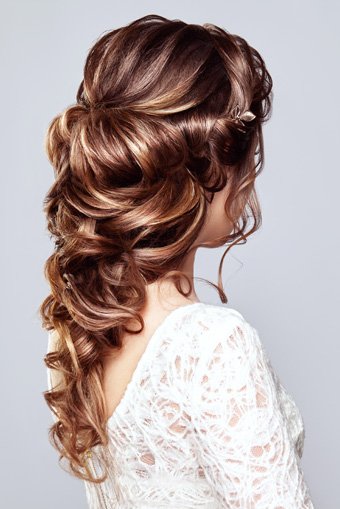Down Hairstyle: Combining the elegance of an updo with the softness of loose curls or waves, the half-up half-down hairstyle offers a versatile and flattering option for brides seeking a balance between sophistication and romance.